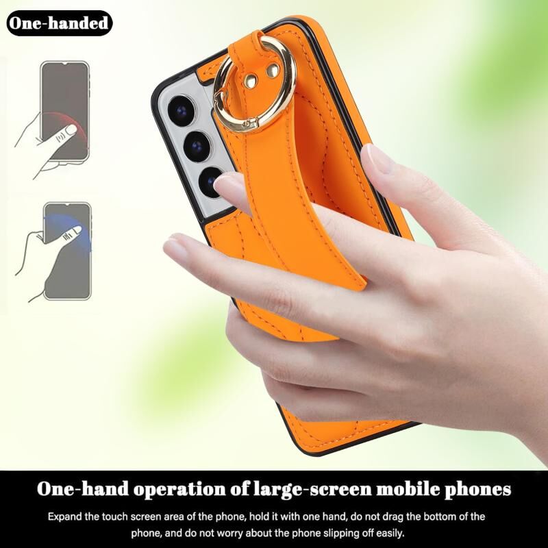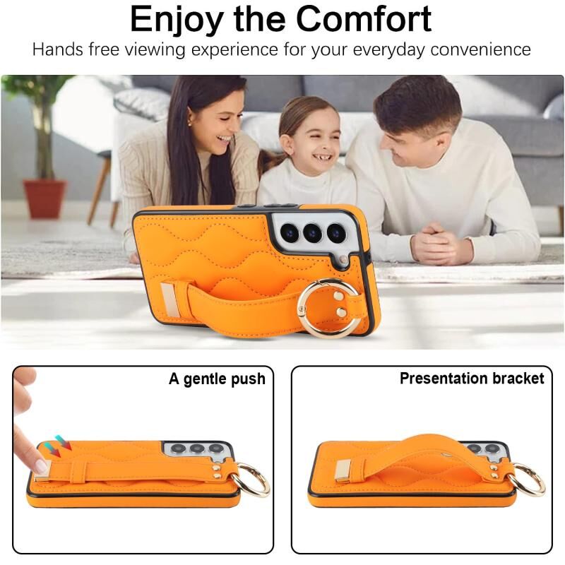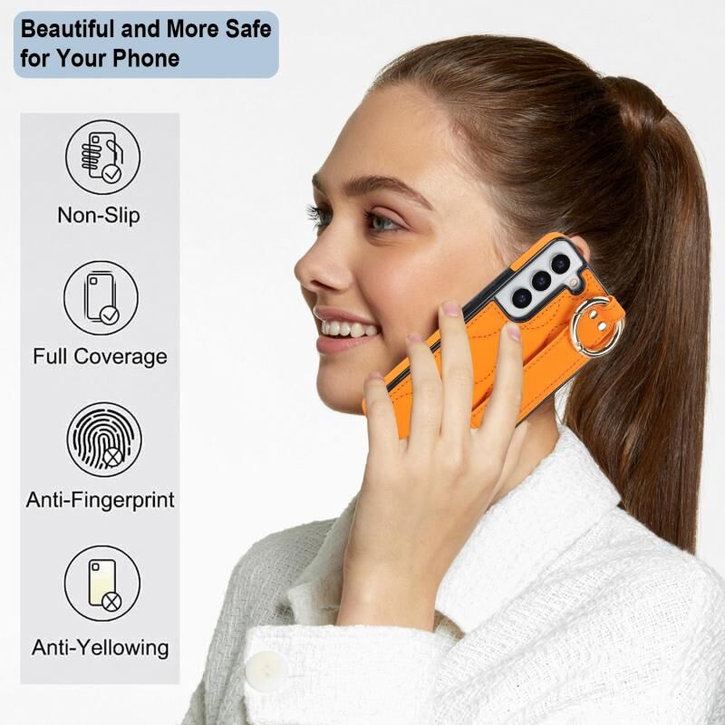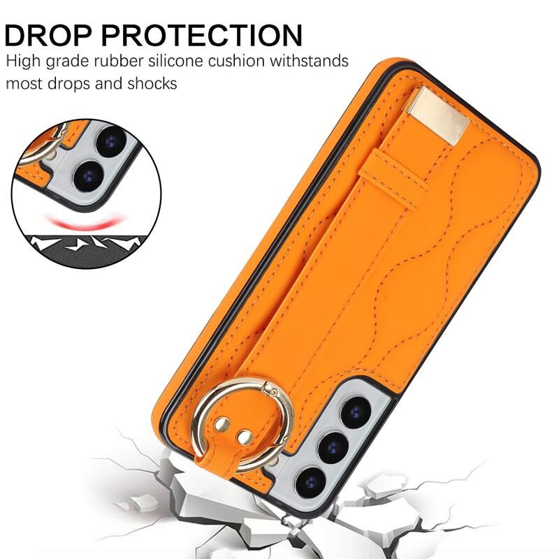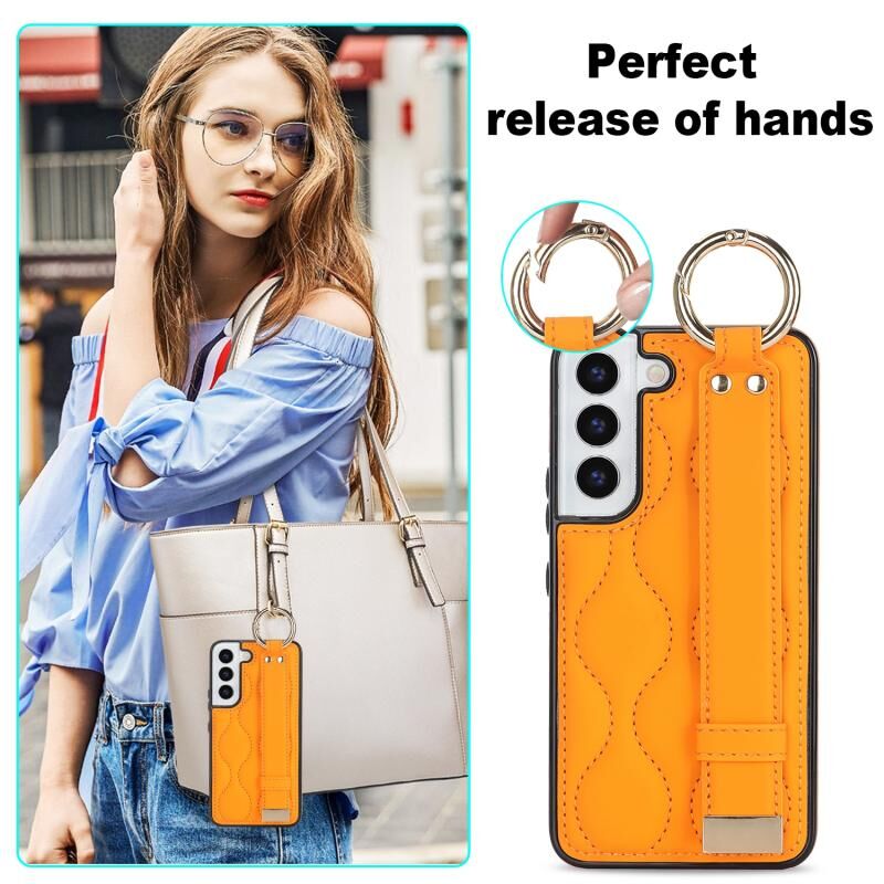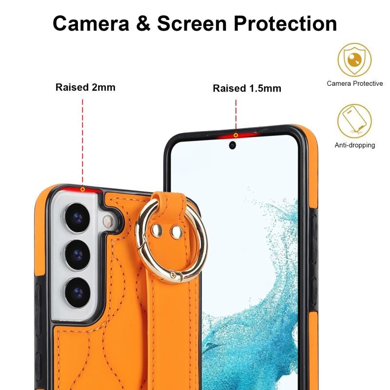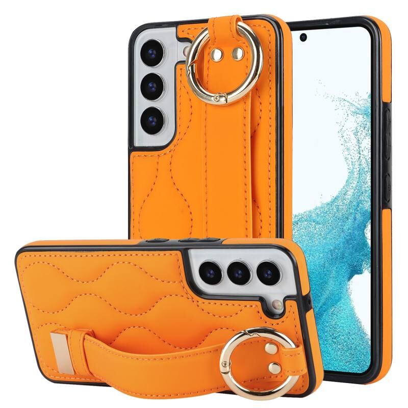 Για το Samsung Galaxy S22+ Αντιολισθητική θήκη τηλεφώνου PU πλήρους κάλυψης με ζώνη καρπού (πορτοκαλί)