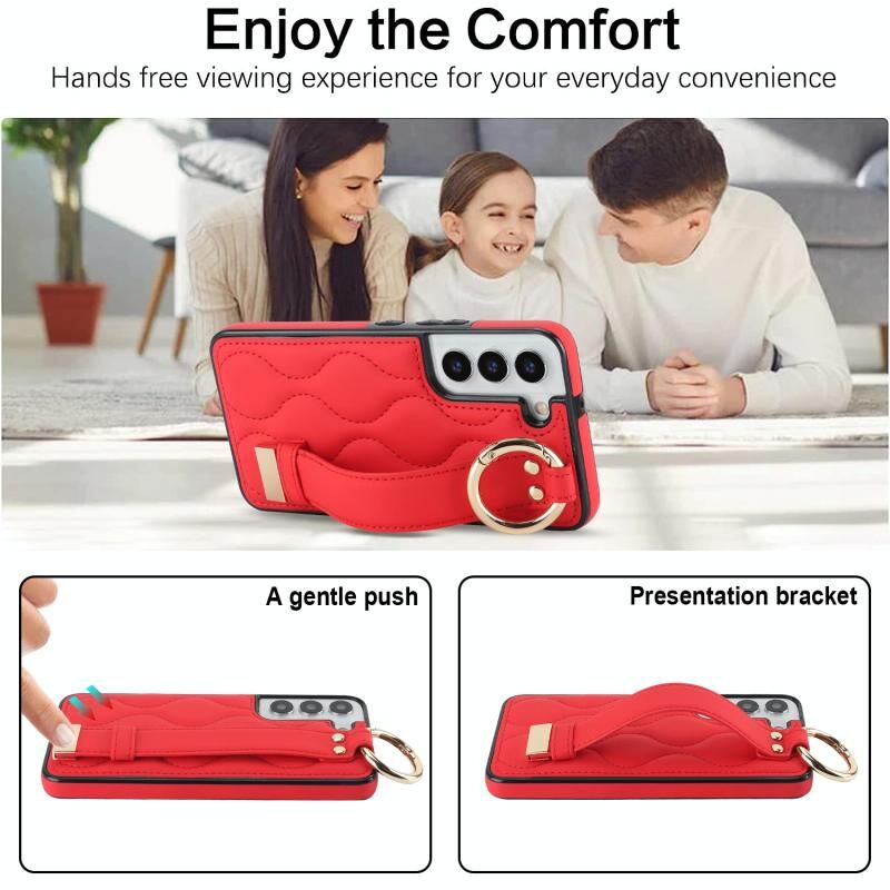 Για το Samsung Galaxy S22 Αντιολισθητική θήκη τηλεφώνου PU πλήρους κάλυψης με ζώνη καρπού (κόκκινο)