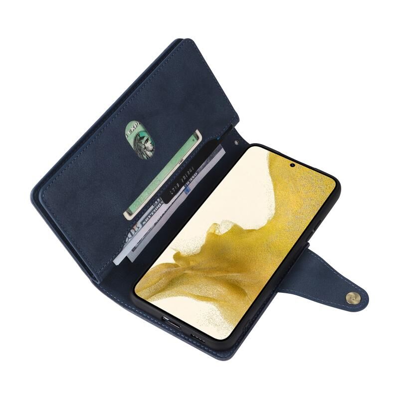 Για Samsung Galaxy S22+ Πριτσίνια πόρπη 9 κάρτες τρεις φορές δερμάτινη θήκη τηλεφώνου (μπλε)