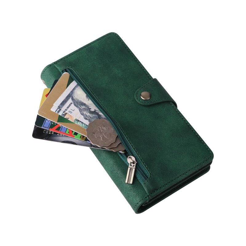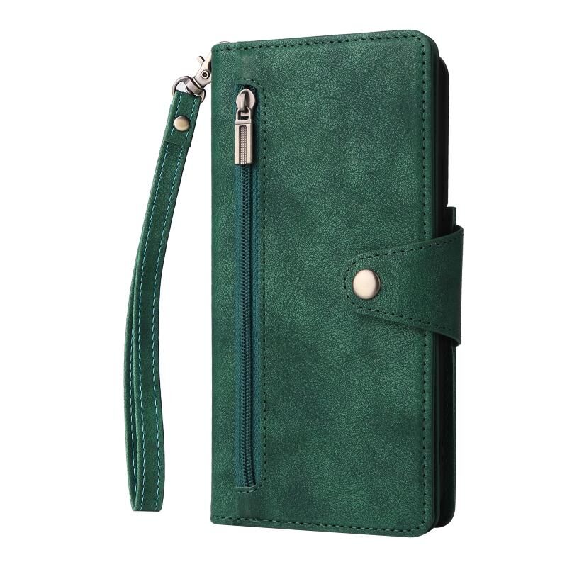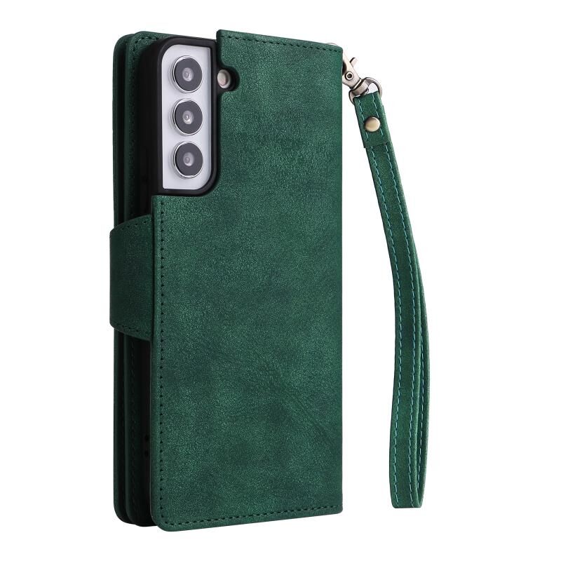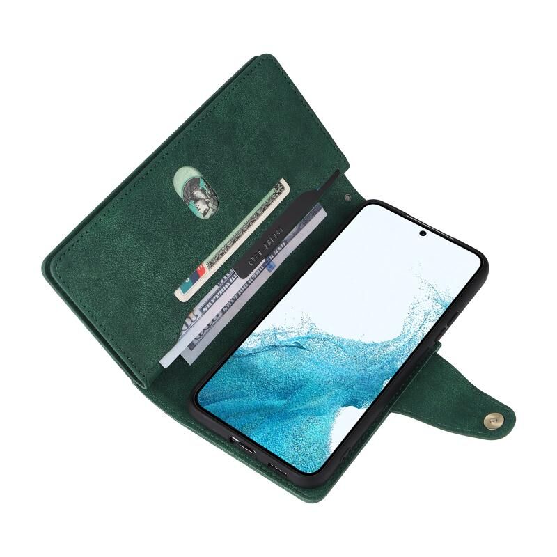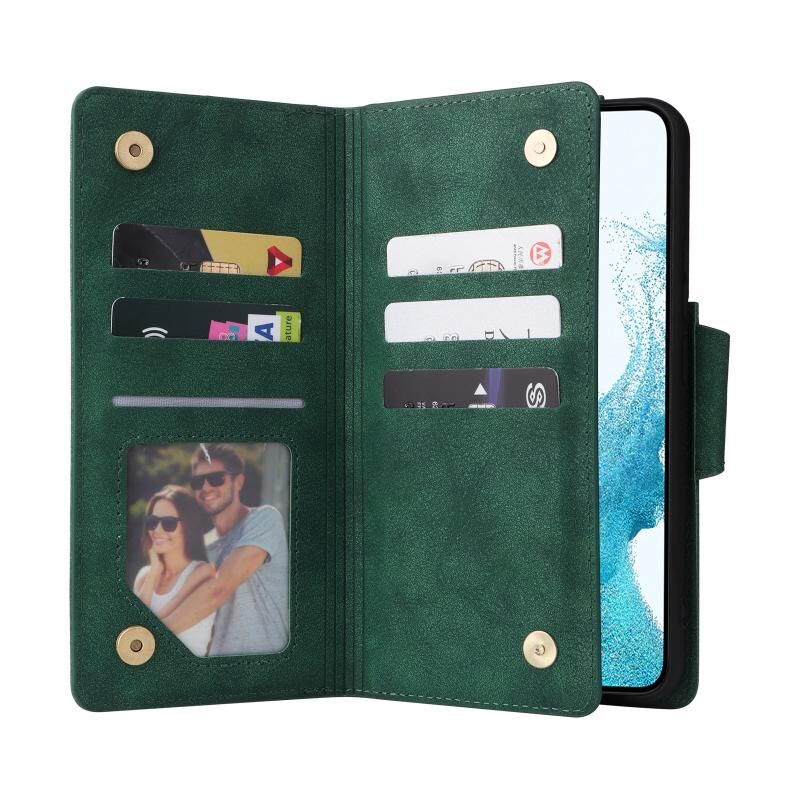 Για Samsung Galaxy S22 Rivet πόρπη 9 κάρτες τρεις φορές δερμάτινη θήκη τηλεφώνου (πράσινο)