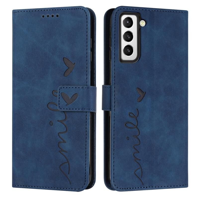 Για Samsung Galaxy S22+ δέρμα αίσθηση καρδιά μοτίβο δερμάτινη θήκη τηλεφώνου (μπλε)