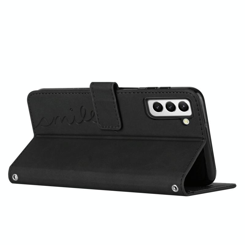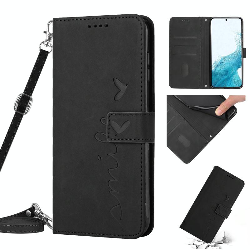 For Samsung Galaxy S22+ Skin Feel Heart Pattern Leather Phone Case With Lanyard(Black)