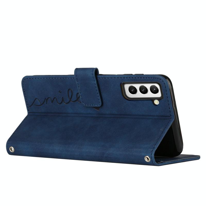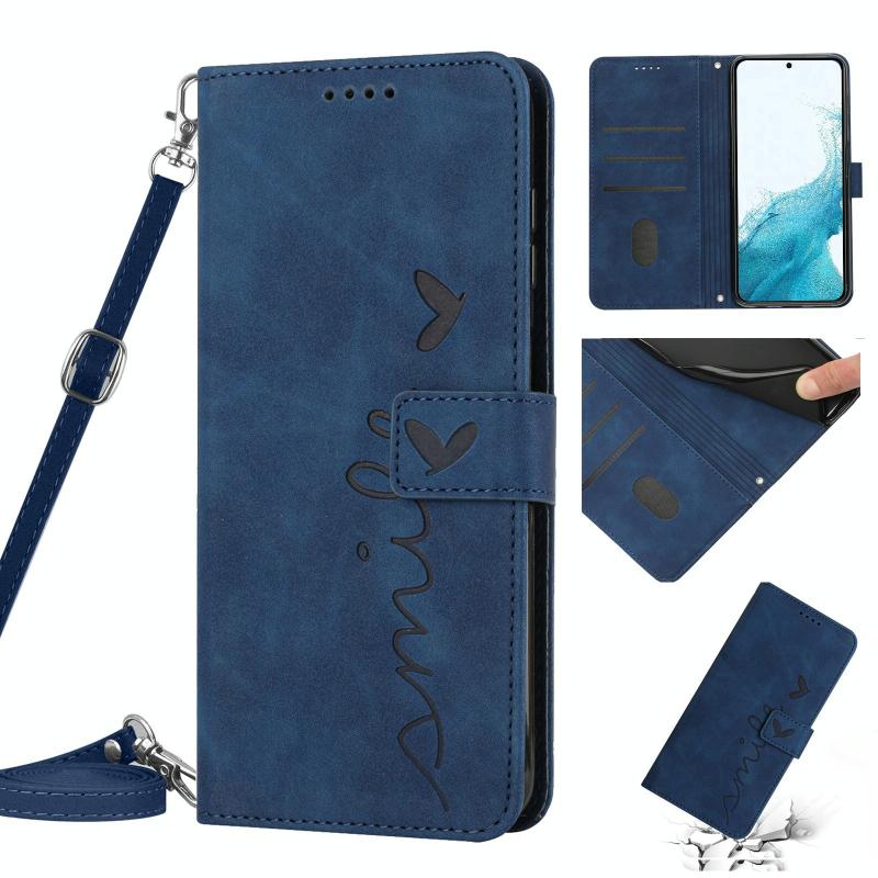 For Samsung Galaxy S22+ Skin Feel Heart Pattern Leather Phone Case With Lanyard(Blue)