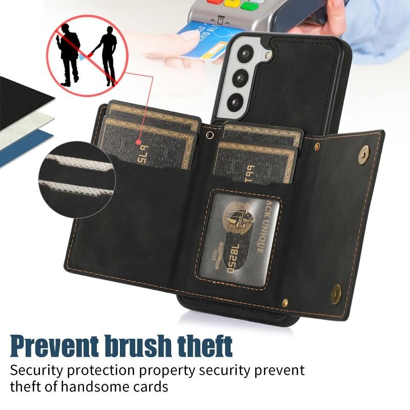 Για Samsung Galaxy S22+ Τρεις φορές RFID δερμάτινη θήκη τηλεφώνου με κορδόνι (Μαύρο)