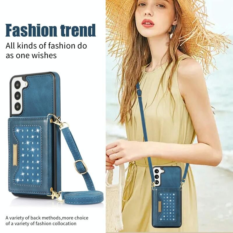 Για Samsung Galaxy S22+ Τρεις φορές RFID δερμάτινη θήκη τηλεφώνου με κορδόνι (μπλε)