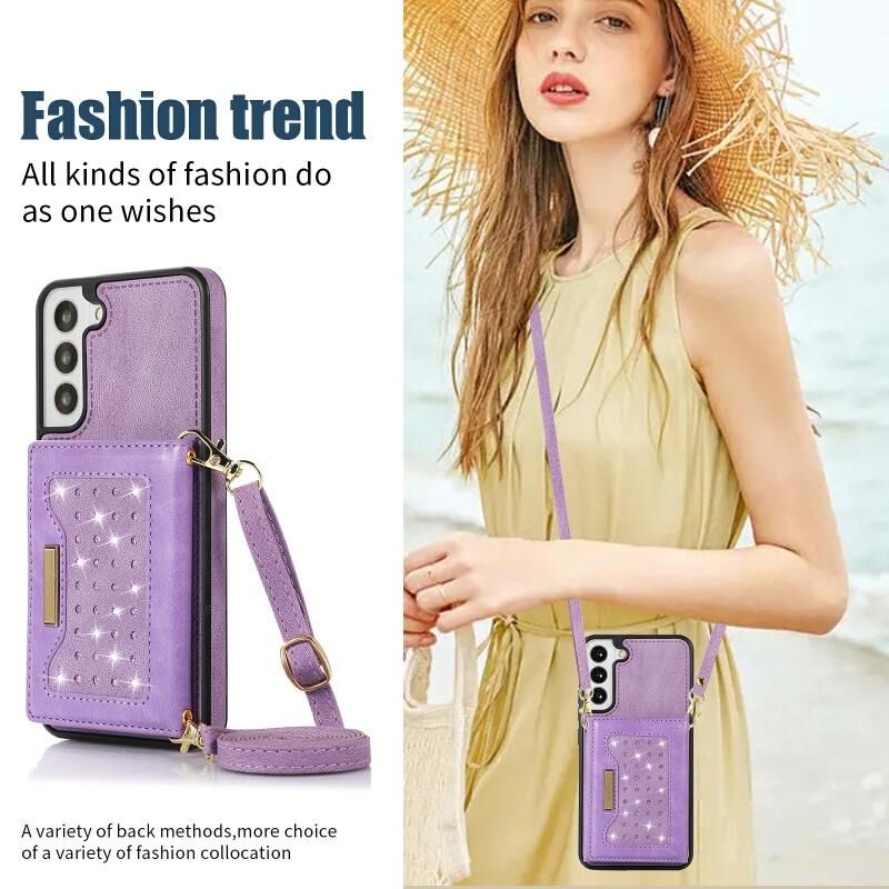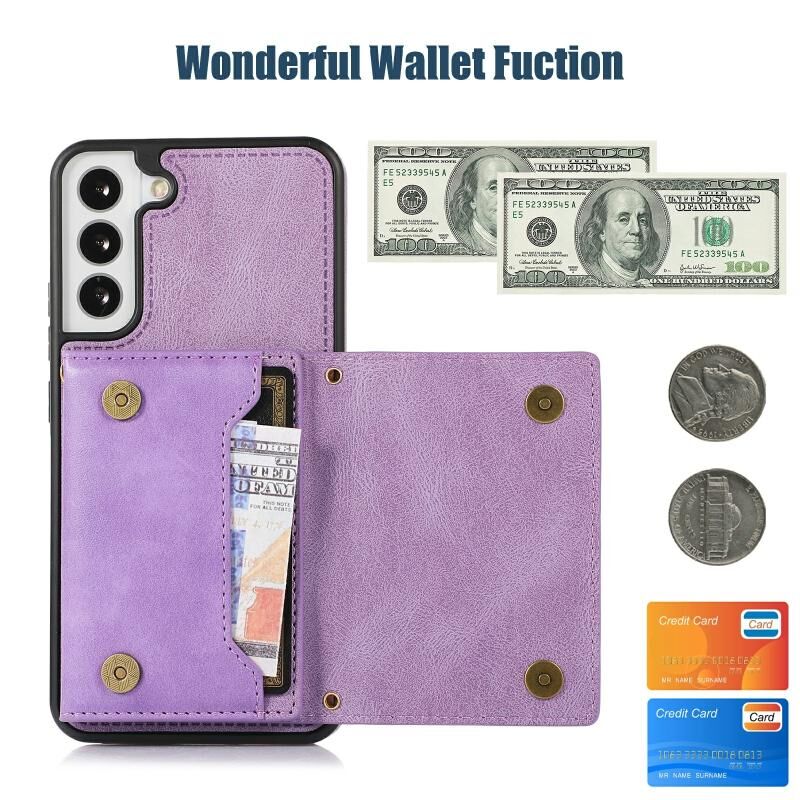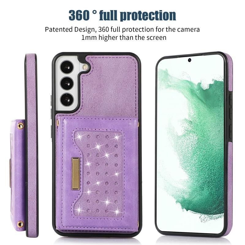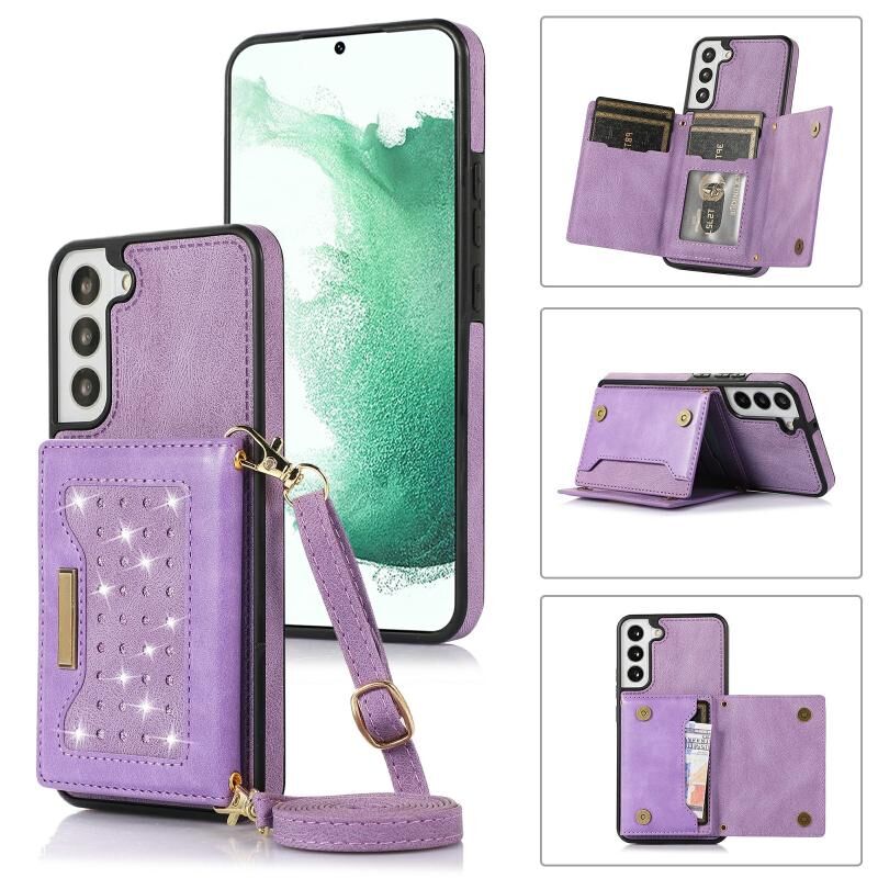 Για Samsung Galaxy S22+ Τρεις φορές RFID δερμάτινη θήκη τηλεφώνου με κορδόνι (μωβ)