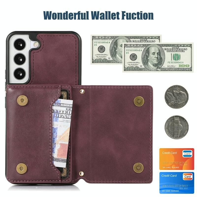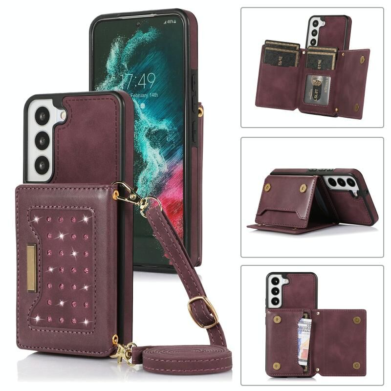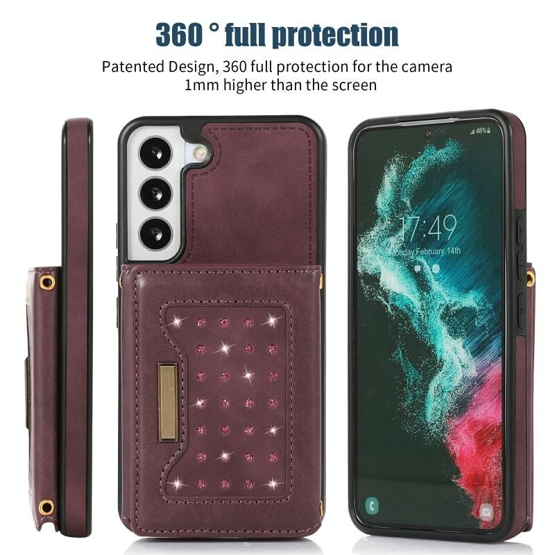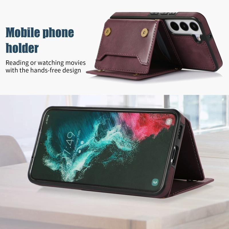 Για Samsung Galaxy S22 Τρεις φορές RFID δερμάτινη θήκη τηλεφώνου με κορδόνι (κόκκινο)
