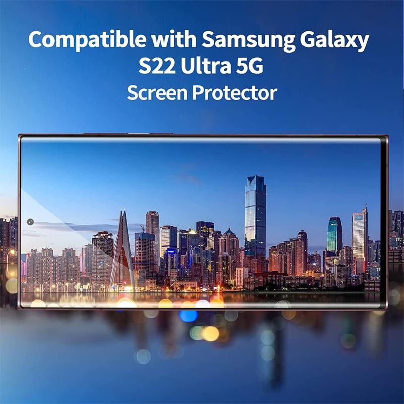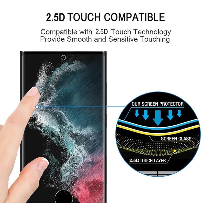 For Samsung Galaxy S22 Ultra 5G 2pcs 3D Curved Edge Full Screen Tempered Glass Film with 2pcs Lens Protector