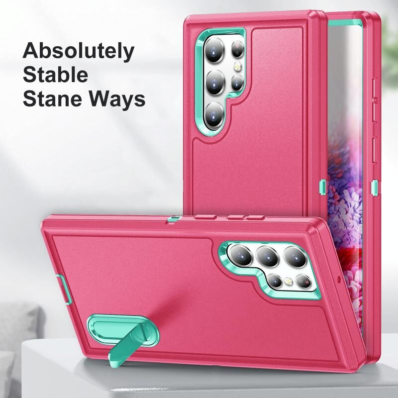 Για Samsung Galaxy S22 Ultra 5G 3 σε 1 ανθεκτική θήκη τηλεφώνου κάτοχος (ροζ + μπλε)