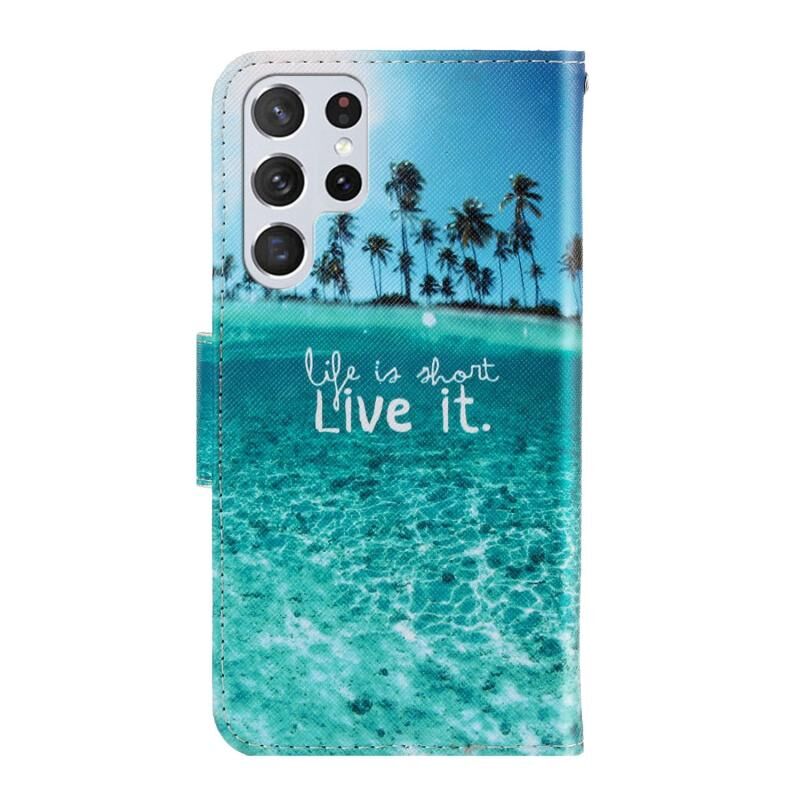 For Samsung Galaxy S22 Ultra 5G 3D Colored Drawing Horizontal Flip Leather Phone Case(Coconut Tree)