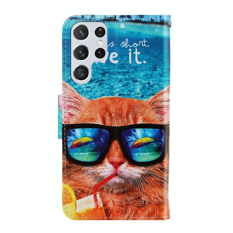 For Samsung Galaxy S22 Ultra 5G 3D Colored Drawing Horizontal Flip Leather Phone Case(Underwater Cat)