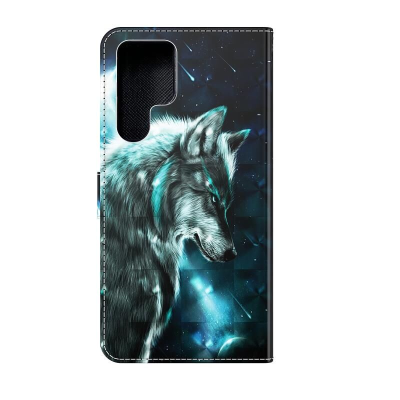 Θήκη κινητού τηλεφώνου για Samsung Galaxy S22 Ultra 5G, με τρισδιάστατο σχέδιο ζωγραφικής, TPU + Δερμάτινη PU (Λύκος)