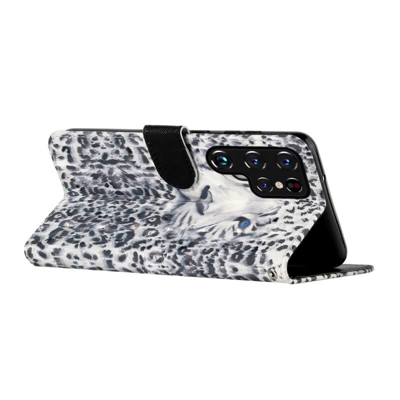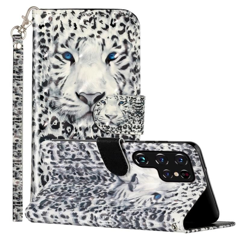 Θήκη τηλεφώνου Samsung Galaxy S22 Ultra 5G 3D μοτίβου, οριζόντια αναδιπλούμενη από δερματίνη PU (Λεοπάρδαλη)