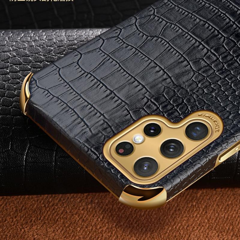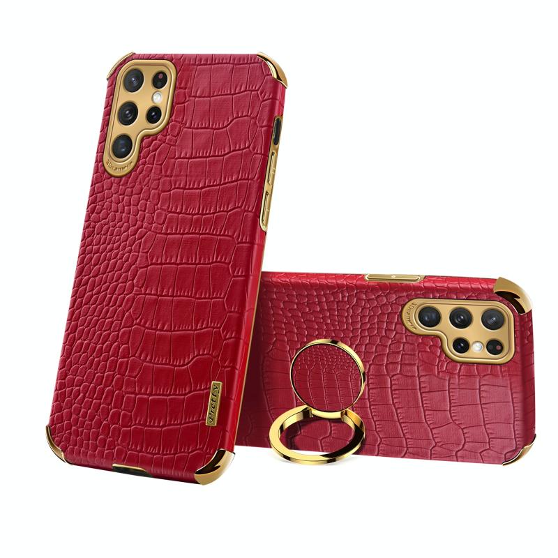 Θήκη κινητού τηλεφώνου με υφή κροκόδειλου, ηλεκτρολυτική 6D, με βάση στήριξης για Samsung Galaxy S22 Ultra 5G (Καφέ)
