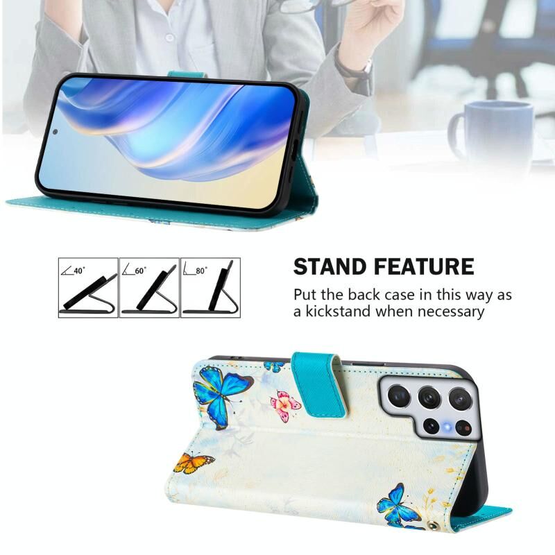 For Samsung Galaxy S22 Ultra 5G Art Colored Drawing Pattern Leather Phone Case(Butterfly house)