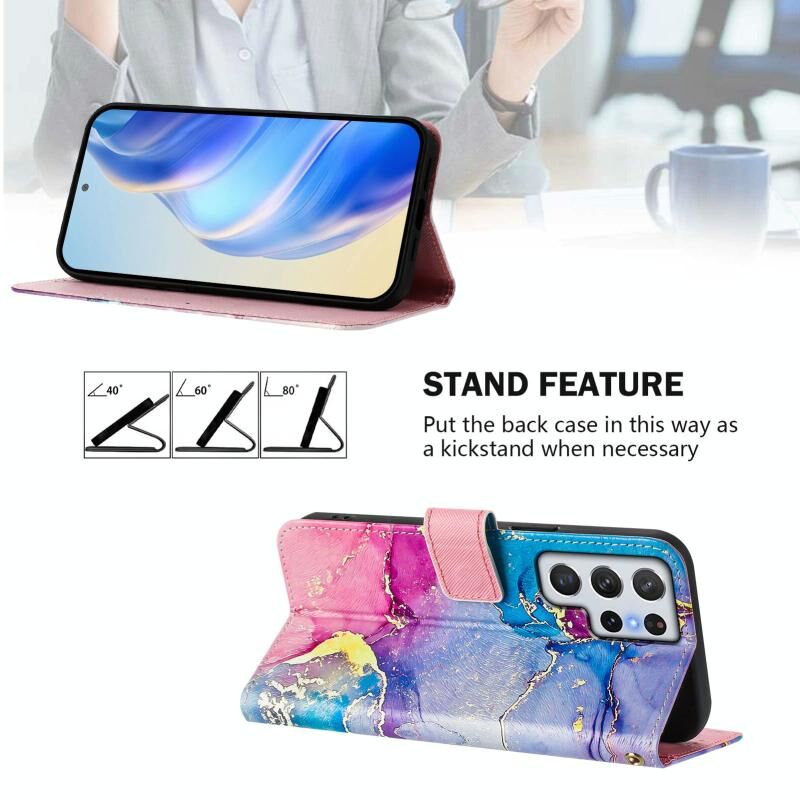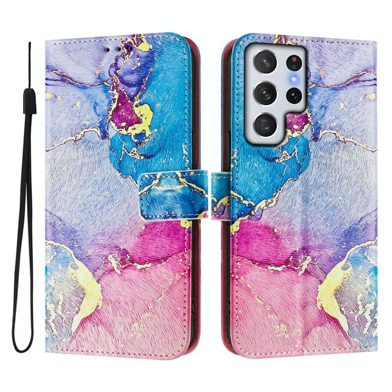 For Samsung Galaxy S22 Ultra 5G Art Colored Drawing Pattern Leather Phone Case(Colorful marble)