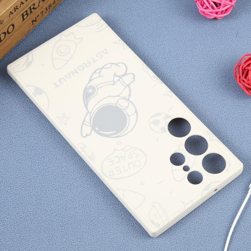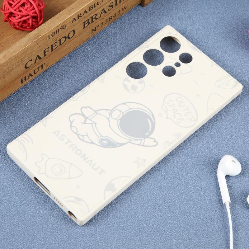 For Samsung Galaxy S22 Ultra 5G Astronaut Pattern Silicone Straight Edge Phone Case(Flying Astronaut-White)