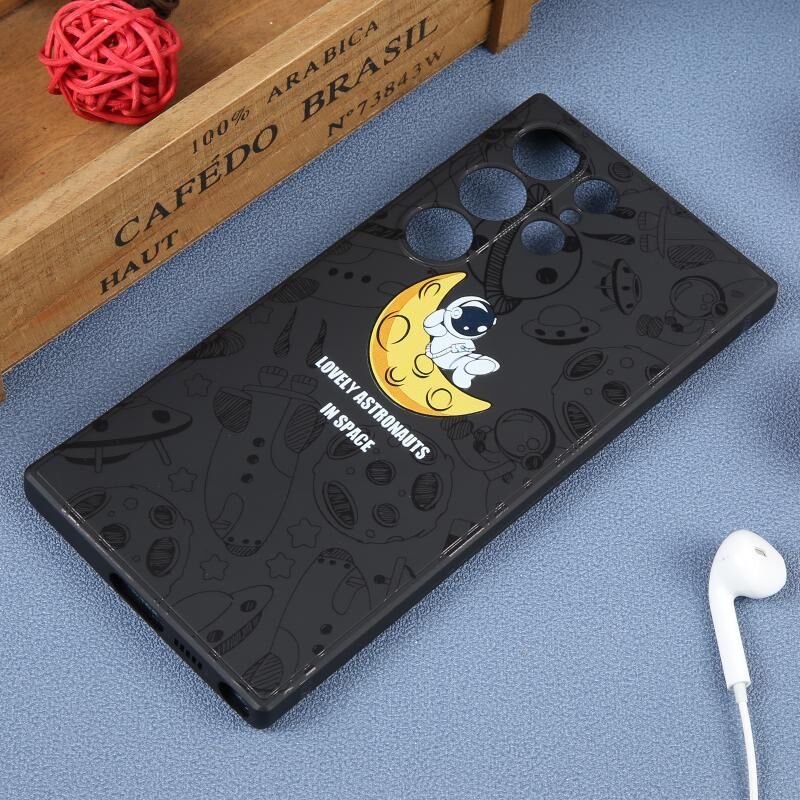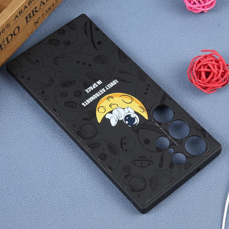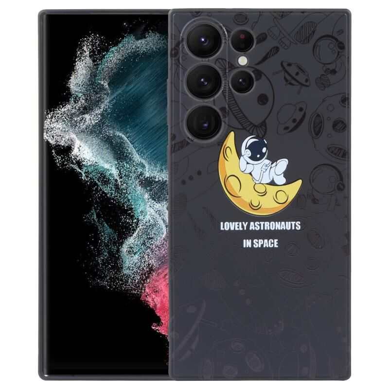 For Samsung Galaxy S22 Ultra 5G Astronaut Pattern Silicone Straight Edge Phone Case(Lovely Astronaut-Black)