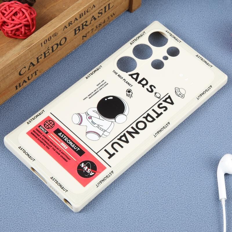 For Samsung Galaxy S22 Ultra 5G Astronaut Pattern Silicone Straight Edge Phone Case(Mars Astronaut-White)