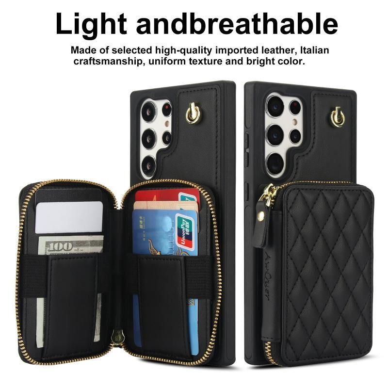 4. Πορτοφόλι με Φερμουάρ: Υπερπολλαπλές υποδοχές καρτών μπορούν να χωρέσουν πολλές κάρτες. Το άνοιγμα και το κλείσιμο του διαμερίσματος με φερμουάρ για μετρητά προστατεύει τα χρήματά σας. Άνετο και πρακτικό για να βγείτε έξω με μια τσάντα κινητού!