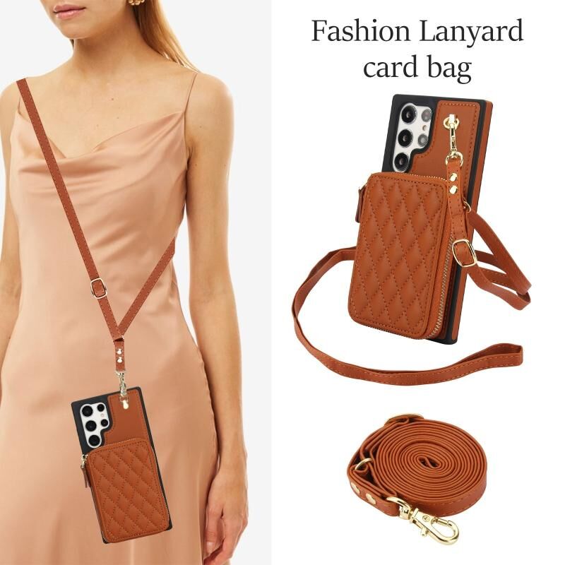 Θήκη κινητού τηλεφώνου για Samsung Galaxy S22 Ultra 5G AwQuer, διαγώνια, δερμάτινη, με φερμουάρ και λουρί στον ώμο (Μαύρο) (Awquer)