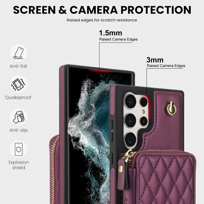 Θήκη κινητού τηλεφώνου για Samsung Galaxy S22 Ultra 5G AwQuer, διαγώνια, δερμάτινη, με φερμουάρ και λουρί στον ώμο (Μαύρο) (Awquer)