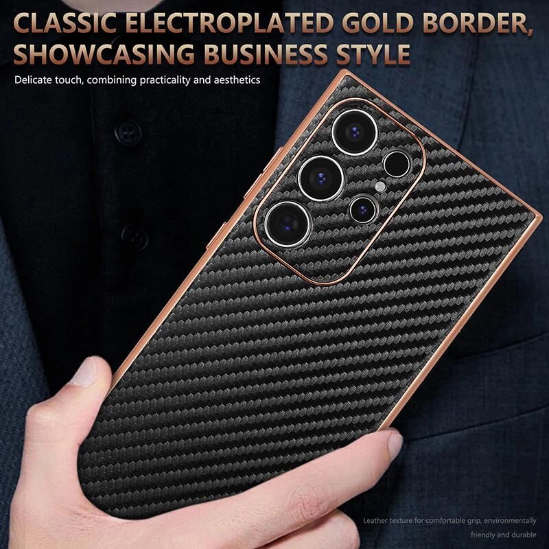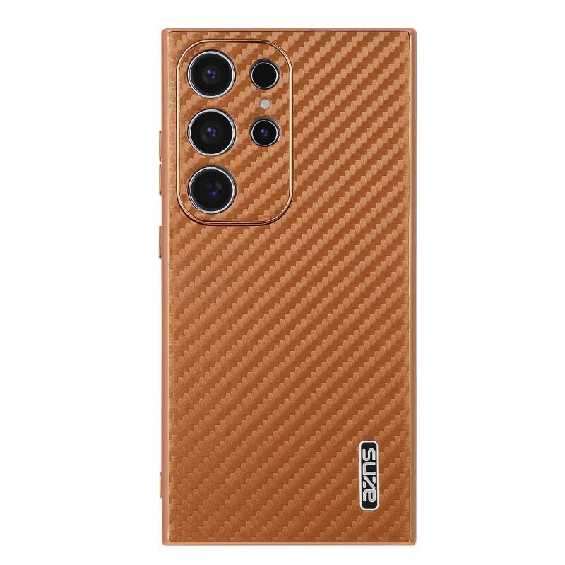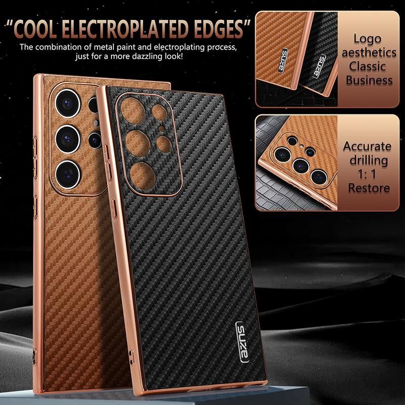 For Samsung Galaxy S22 Ultra 5G AZNS Electroplated Edge Carbon Fiber Texture Phone Case(Brown) (AZNS)
