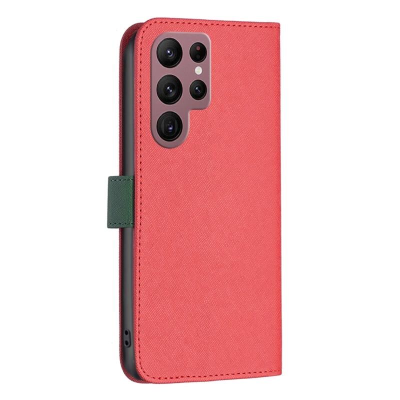 Για Samsung Galaxy S22 Ultra 5G BF13 χρώμα ταιριάζει με σταυρό υφή δερμάτινη θήκη τηλεφώνου (κόκκινο)