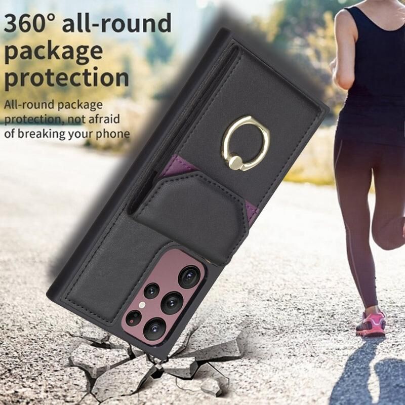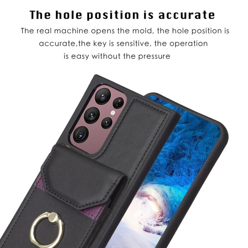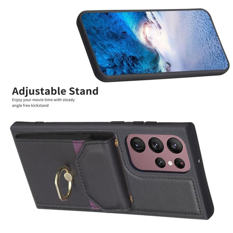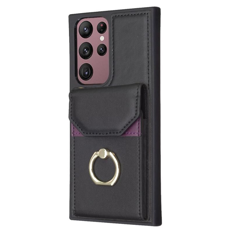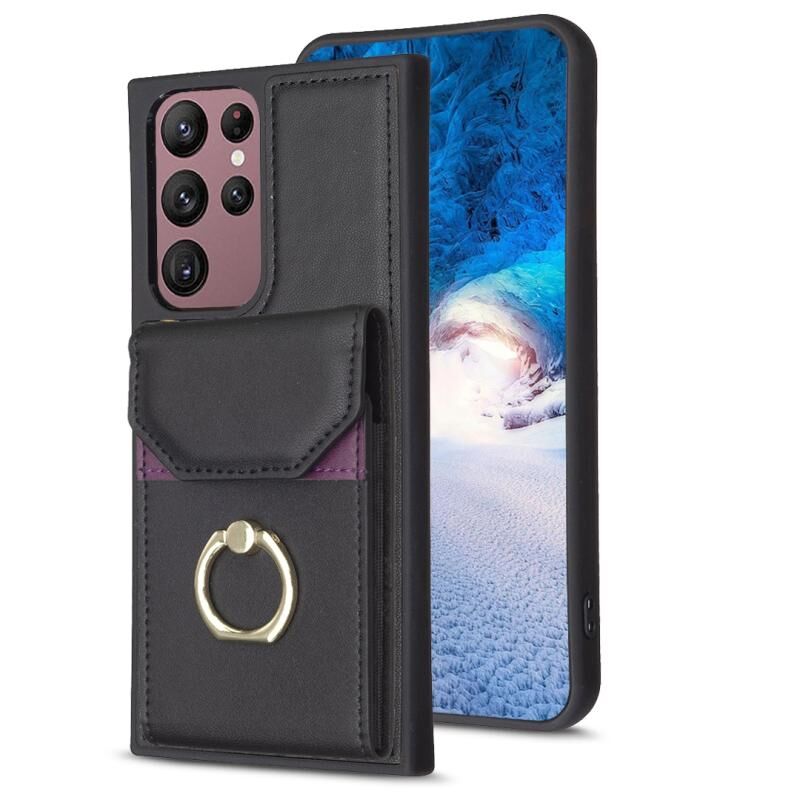 Για Samsung Galaxy S22 Ultra 5G BF29 Οργάνου κάρτα τσάντα δαχτυλίδι κάτοχος τηλέφωνο υπόθεση (μαύρο)