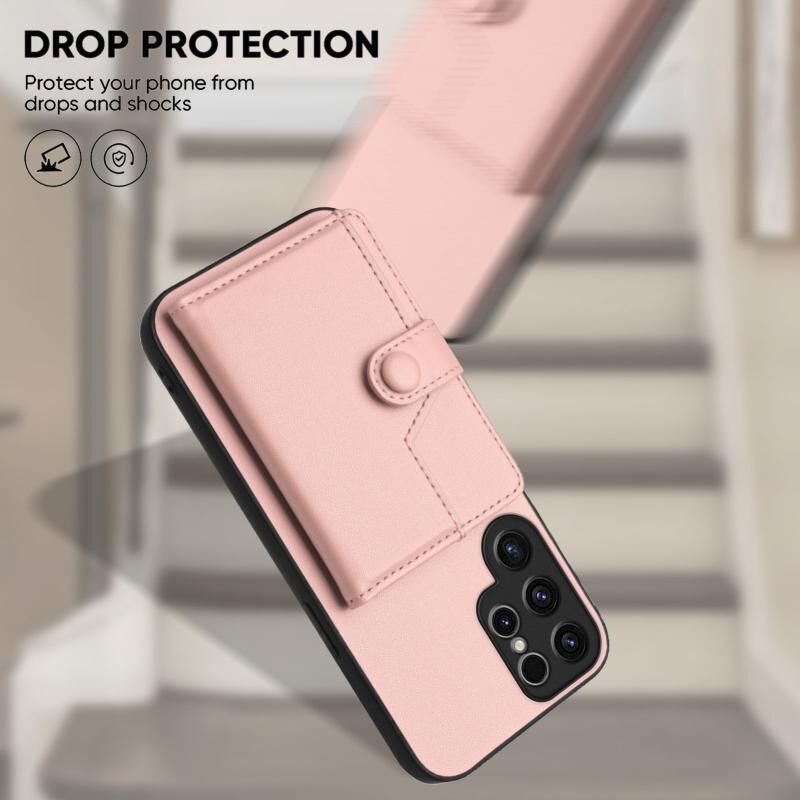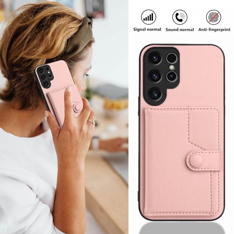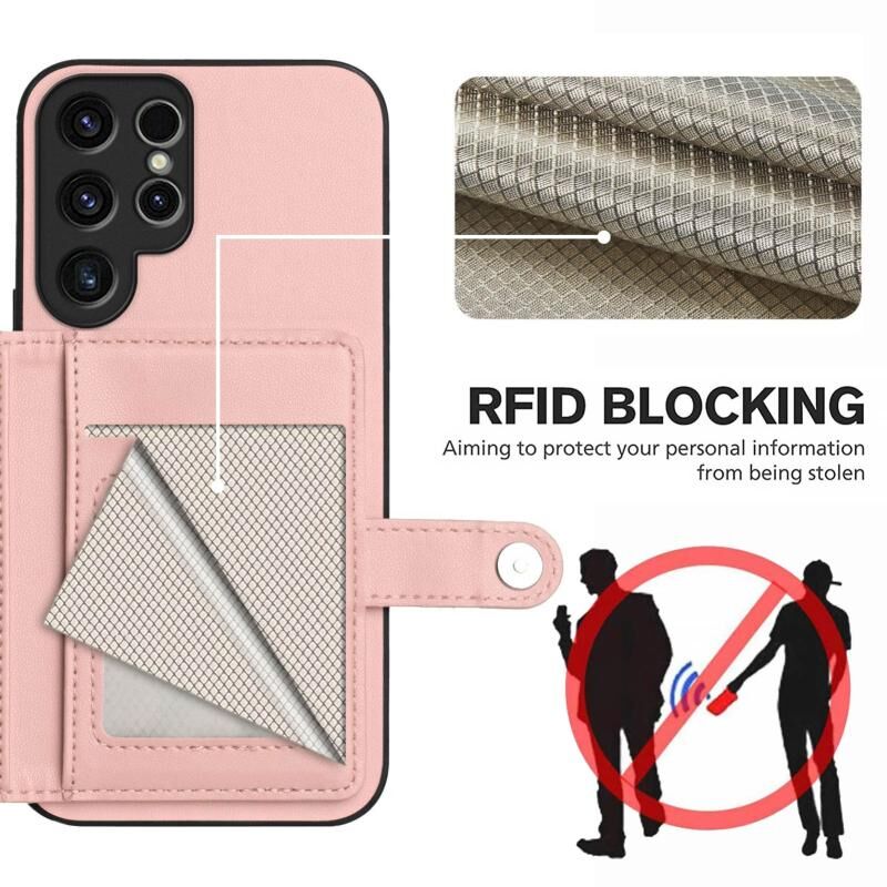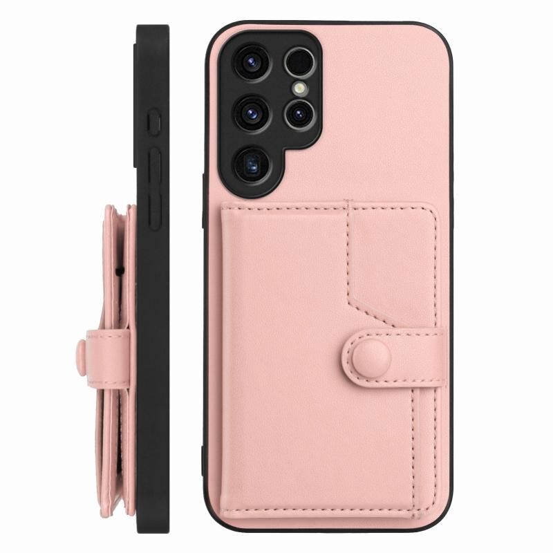 For Samsung Galaxy S22 Ultra 5G Button Card Bag RFID Anti-theft Phone Case(Pink)
