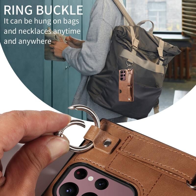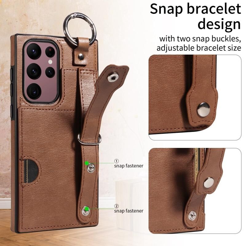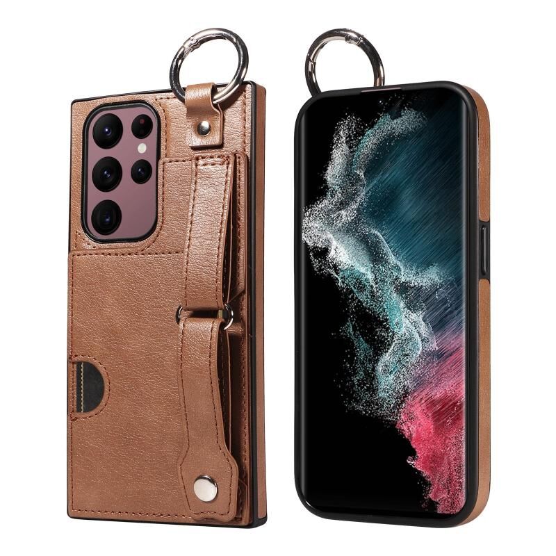 Για Samsung Galaxy S22 Ultra 5G Calf υφή καρπού κάρτα Slot Ring υπόθεση τηλεφώνου (καφέ)