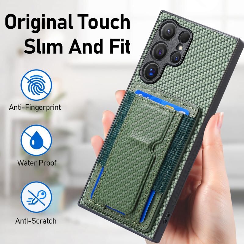 Για Samsung Galaxy S22 Ultra 5G ίνες άνθρακα ινών Fold Stand ελαστική κάρτα τσάντα υπόθεση τηλεφώνου (πράσινο)