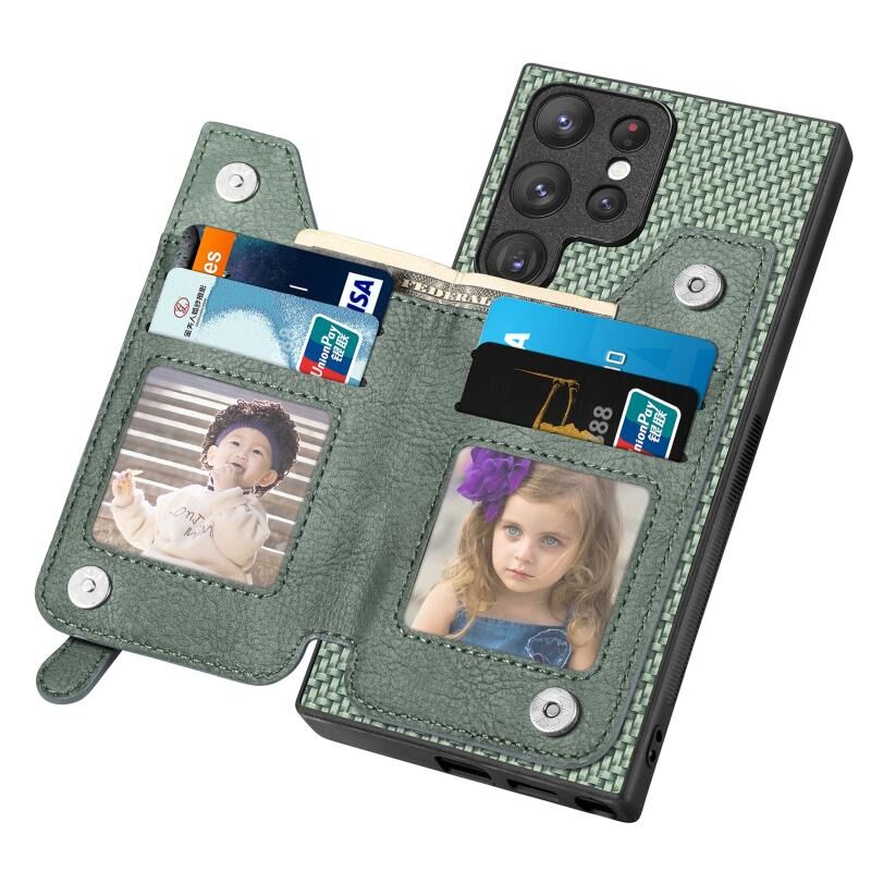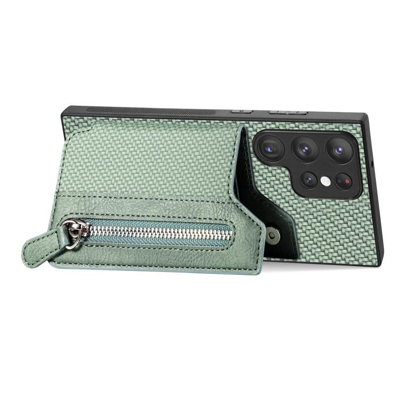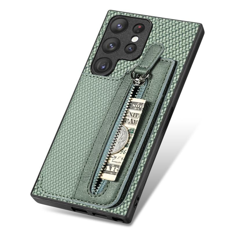 Για Samsung Galaxy S22 Ultra 5G Carbon Fiber Οριζόντια Flip φερμουάρ πορτοφόλι υπόθεση τηλεφώνου (πράσινο)