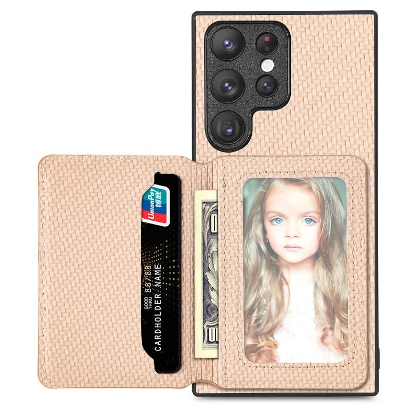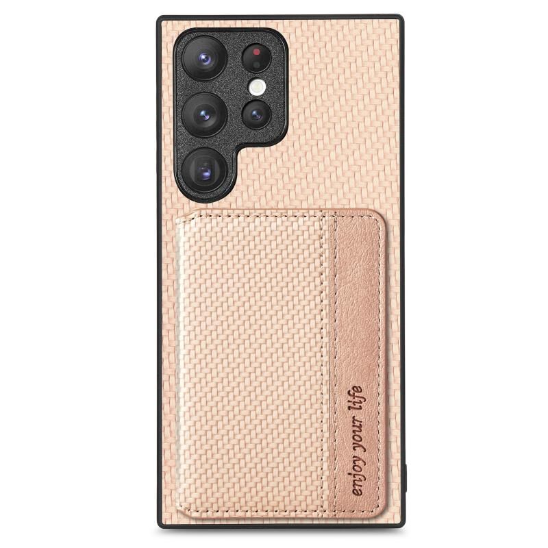 Για Samsung Galaxy S22 Ultra 5G Carbon Fiber μαγνητική κάρτα πορτοφόλι τσάντα υπόθεση τηλεφώνου (χακί)