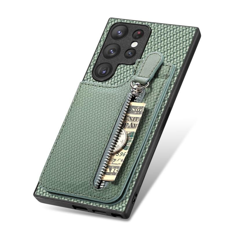Για Samsung Galaxy S22 Ultra 5G Carbon Fiber Κάθετη Flip φερμουάρ Wallet υπόθεση τηλεφώνου (πράσινο)