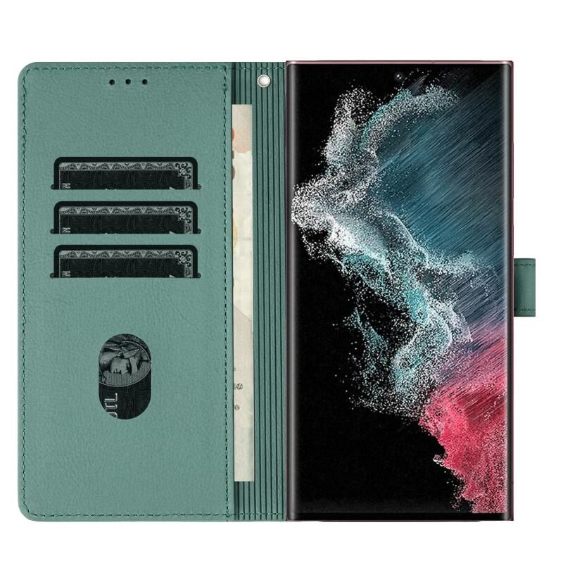 Θήκη τηλεφώνου Samsung Galaxy S22 Ultra 5G από δέρμα με ανάγλυφο σχέδιο καρτούν ελέφαντα (Μπλε)