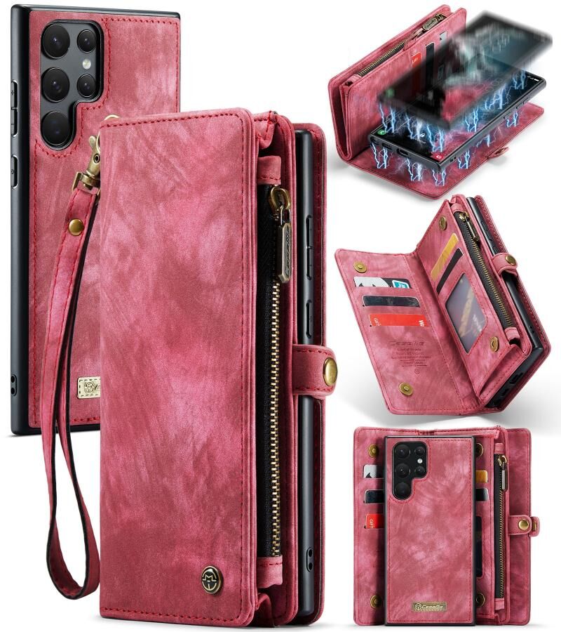 For Samsung Galaxy S22 Ultra 5G CaseMe-008 Detachable Multifunctional Horizontal Flip Leather Case(Red) (CaseMe)