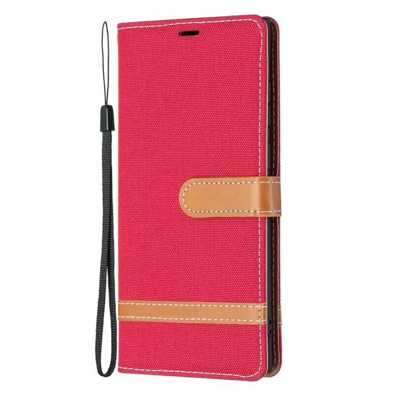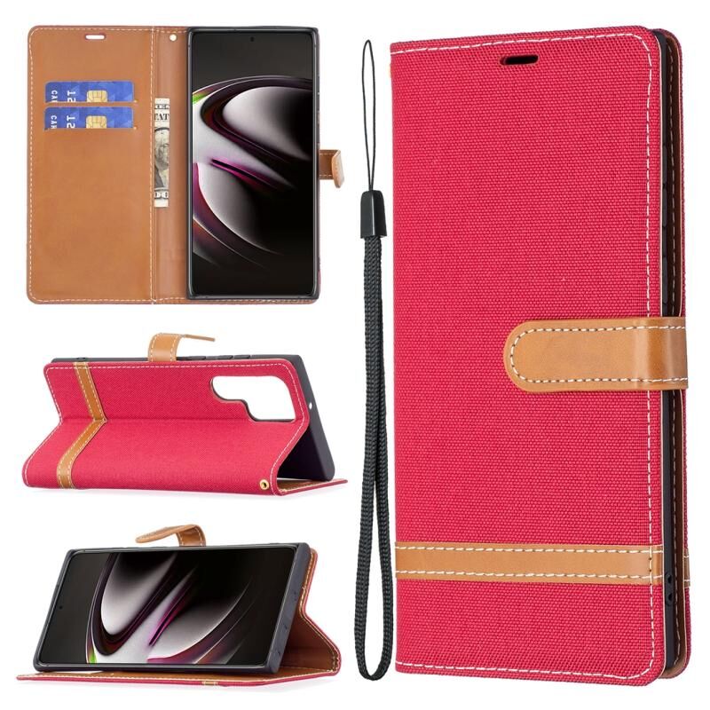 Για Samsung Galaxy S22 Ultra 5G Χρώμα ταιριάζουν Denim Υφή δερμάτινη θήκη με θήκη & υποδοχές για κάρτες & πορτοφόλι & κορδόνι (κόκκινο)