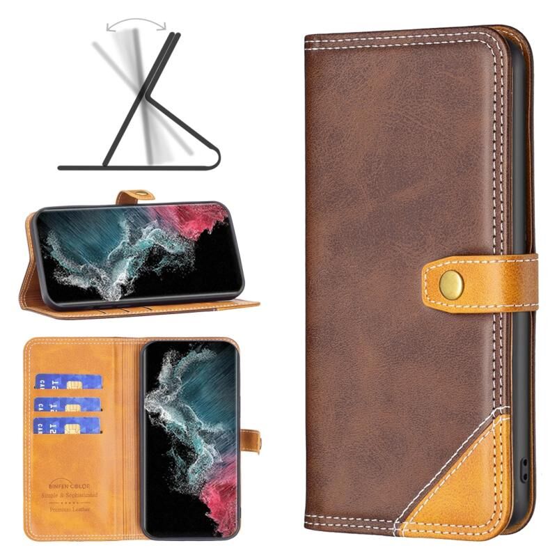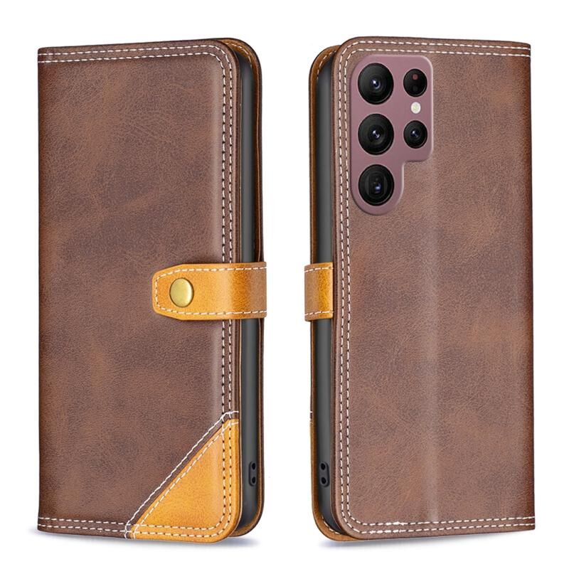 Θήκη τηλεφώνου Samsung Galaxy S22 Ultra 5G από δέρμα με διπλή ραφή και αντιστοίχιση χρωμάτων (Μαύρο)