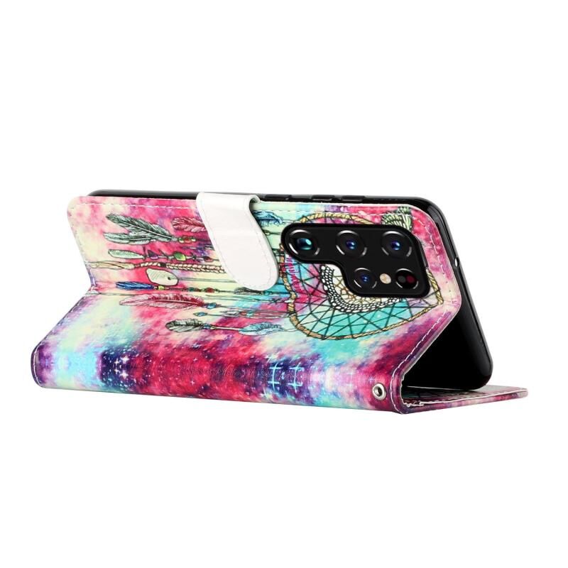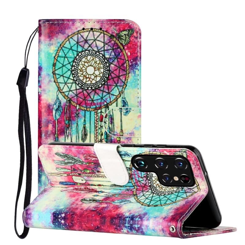 Θήκη τηλεφώνου από δερματίνη PU με σχέδιο μαρμάρου και πολύχρωμη ζωγραφική για Samsung Galaxy S22 Ultra 5G (Κρεμαστά κουδουνάκια πεταλούδας)