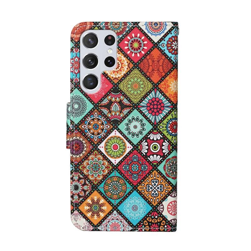 Θήκη δέρματος τύπου flip με έγχρωμο σχέδιο για Samsung Galaxy S22 Ultra 5G (Εθνικό Στυλ)