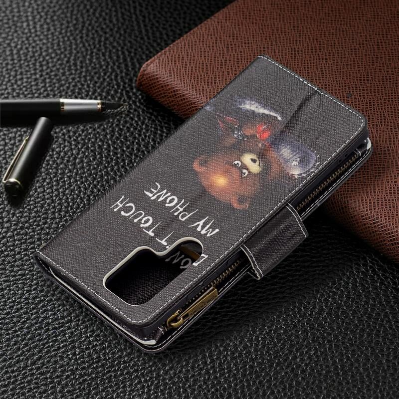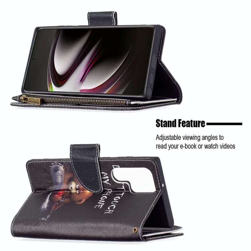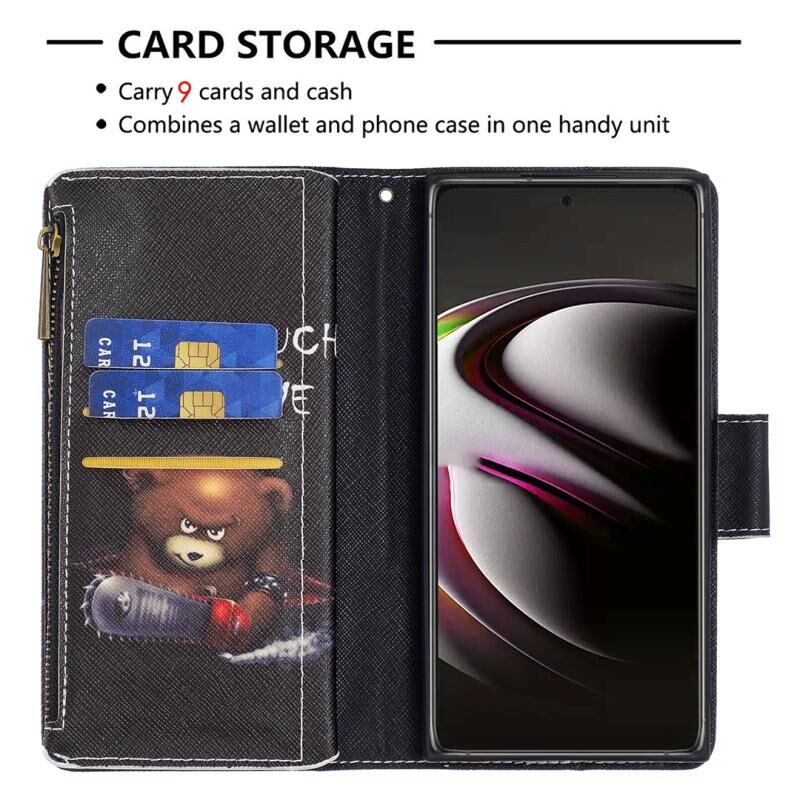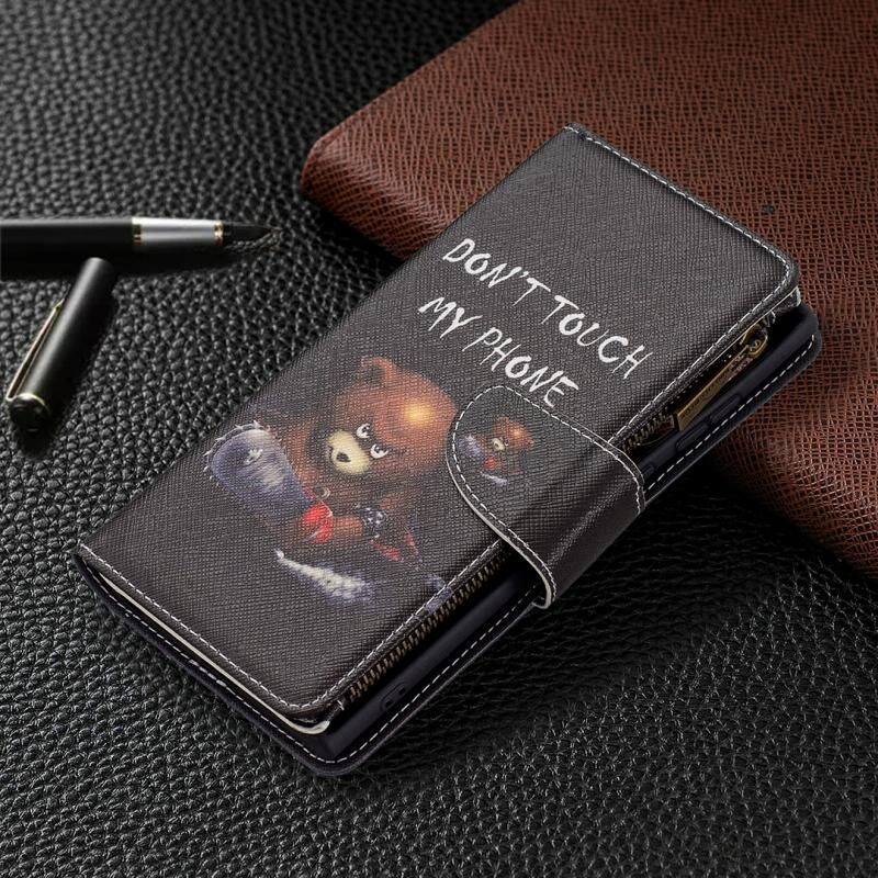 Θήκη τηλεφώνου Samsung Galaxy S22 Ultra 5G, δερμάτινη, οριζόντια, με φερμουάρ, σχέδιο πολύχρωμης ζωγραφικής, με βάση & θήκες καρτών & πορτοφόλι (Αρκούδα)