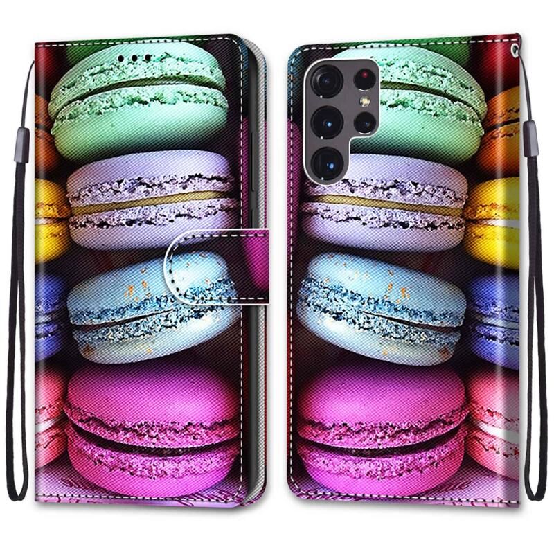 Θήκη τηλεφώνου Samsung Galaxy S22 Ultra 5G από δέρμα PU με οριζόντιο άνοιγμα, πολύχρωμη σχεδίαση με υφή σταυρού, με βάση, θήκες καρτών, πορτοφόλι και κορδόνι (Πολύχρωμο Στρώμα (Πολύχρωμη Τούρτα Στρωμάτων))