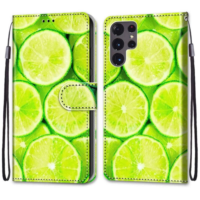 Θήκη τηλεφώνου Samsung Galaxy S22 Ultra 5G από δέρμα PU με οριζόντιο άνοιγμα, πολύχρωμη σχεδίαση με υφή σταυρού, με βάση, θήκες καρτών, πορτοφόλι και κορδόνι (Πολύχρωμο Στρώμα (Λάιμ))