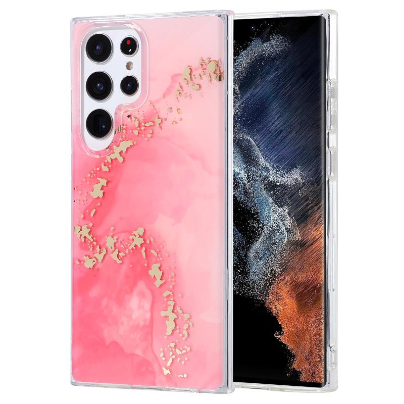 For Samsung Galaxy S22 Ultra 5G Coloured Glaze Marble Phone Case(Pink Gold)