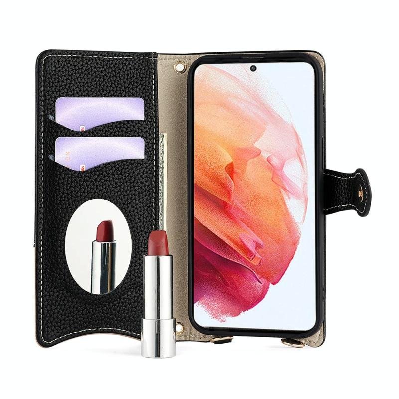 7. Ενσωματωμένος Οβάλ Καθρέφτης από Ανοξείδωτο Ατσάλι: Ένας ανθεκτικός, ανθεκτικός στις γρατζουνιές οβάλ καθρέφτης μέσα στη θήκη του τηλεφώνου για εύκολη ανανέωση του μακιγιάζ εν κινήσει.