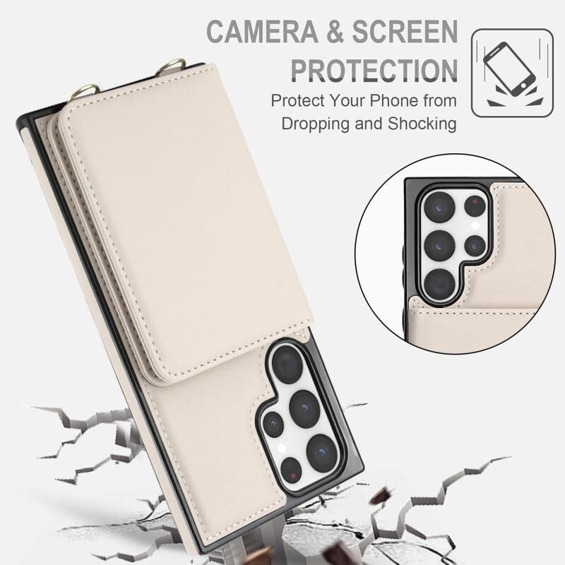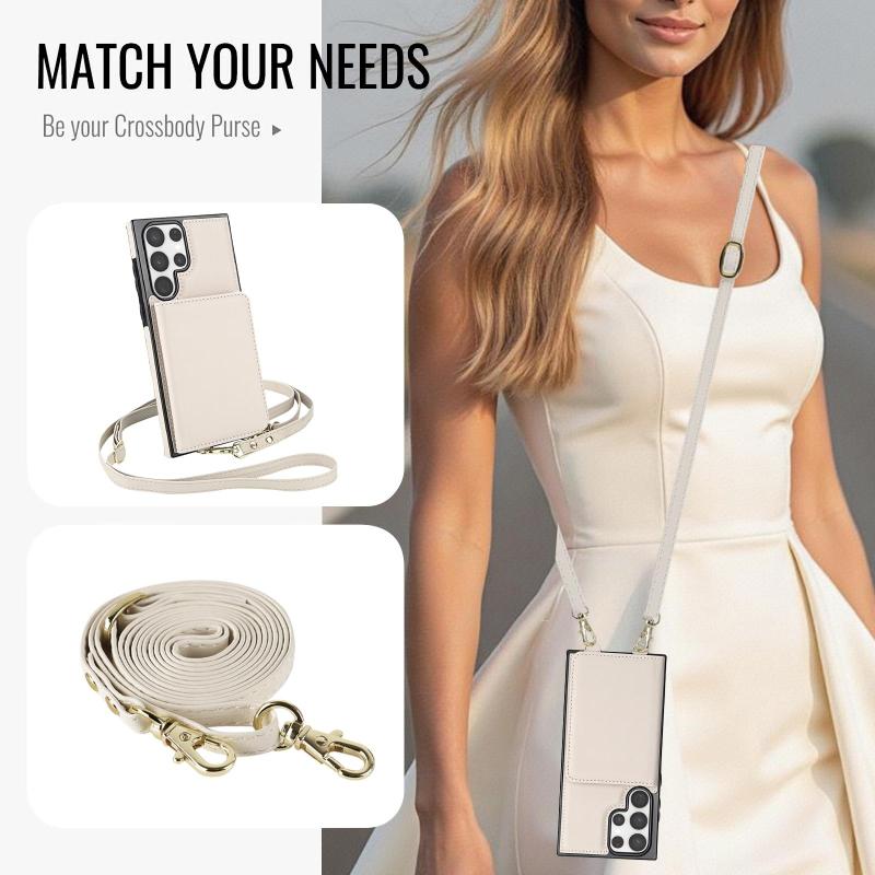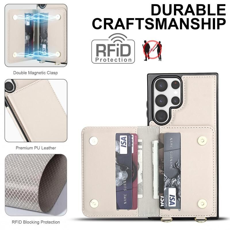 For Samsung Galaxy S22 Ultra 5G Crossbody Dual-buckle Wallet RFID Back Leather Phone Case(White)