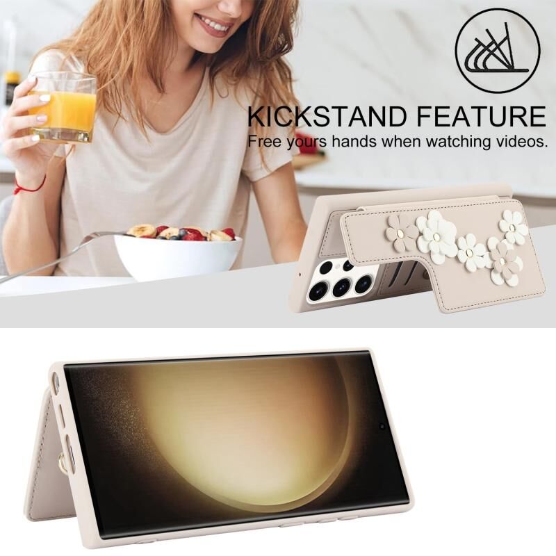 For Samsung Galaxy S22 Ultra 5G Crossbody Flower Pattern Leather Phone Case(White)