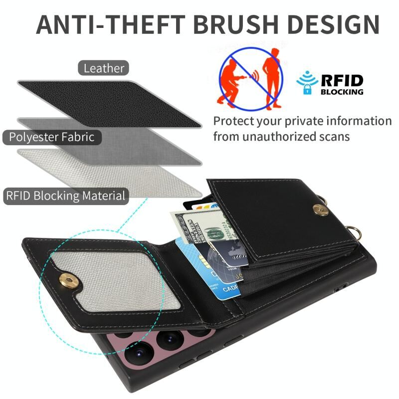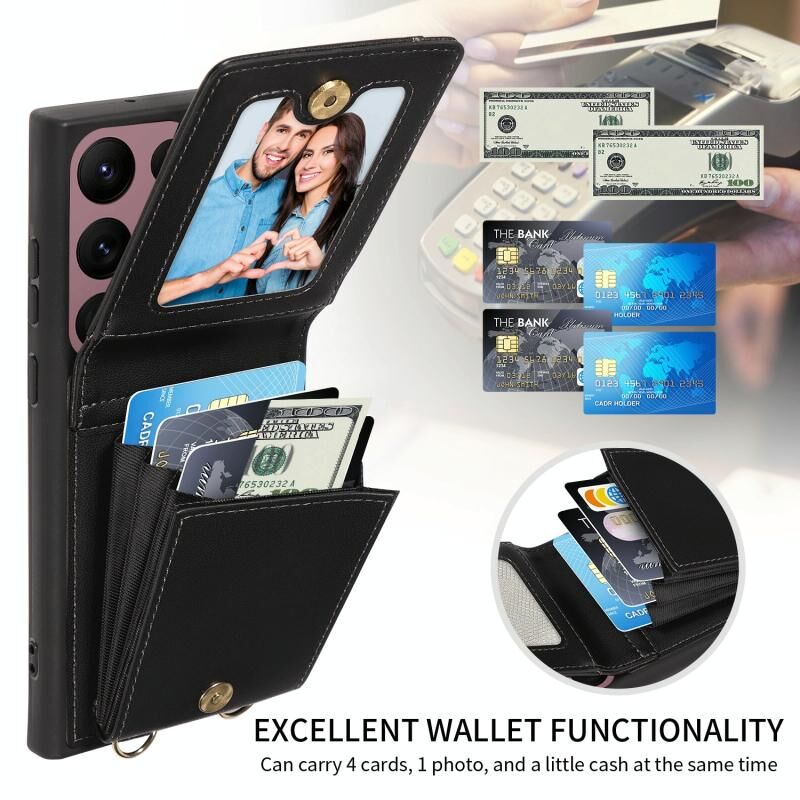 Για Samsung Galaxy S22 Ultra 5G Crossbody Lanyard φερμουάρ πορτοφόλι δερμάτινη θήκη τηλεφώνου (μαύρο)