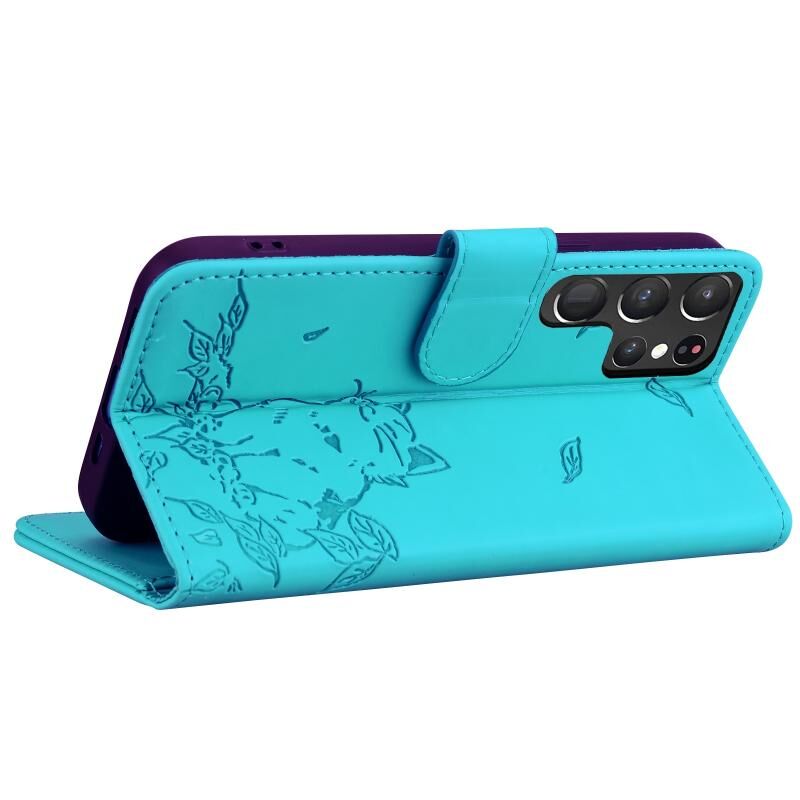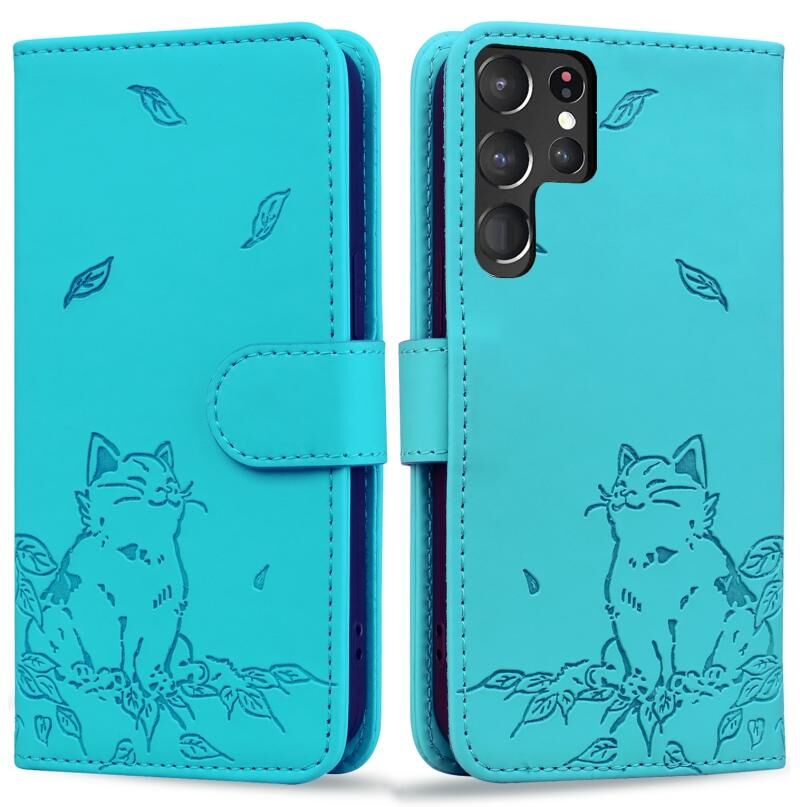 Θήκη τηλεφώνου από δέρμα με ανάγλυφο γατάκι για Samsung Galaxy S22 Ultra 5G (Μωβ)